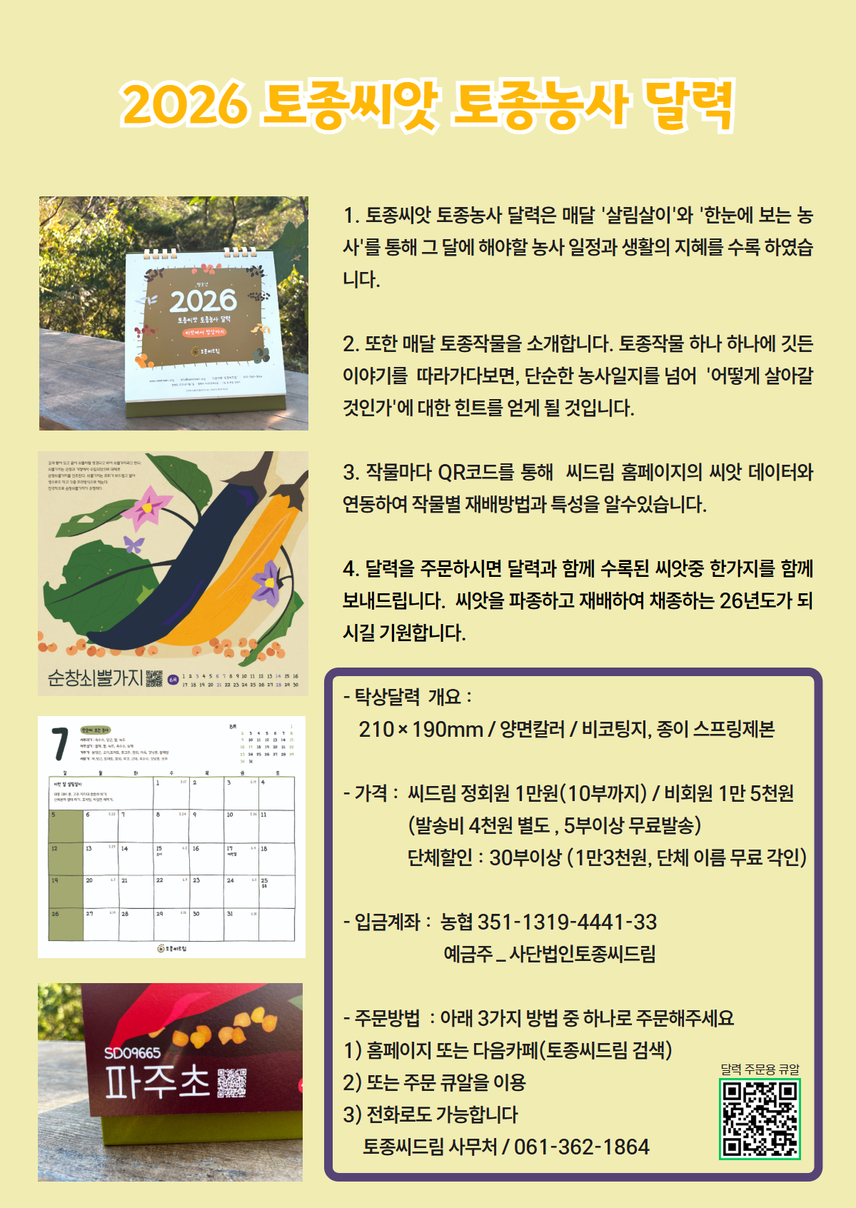 ● 문의 (사)토종씨드림 사무처 / 061-362-1864