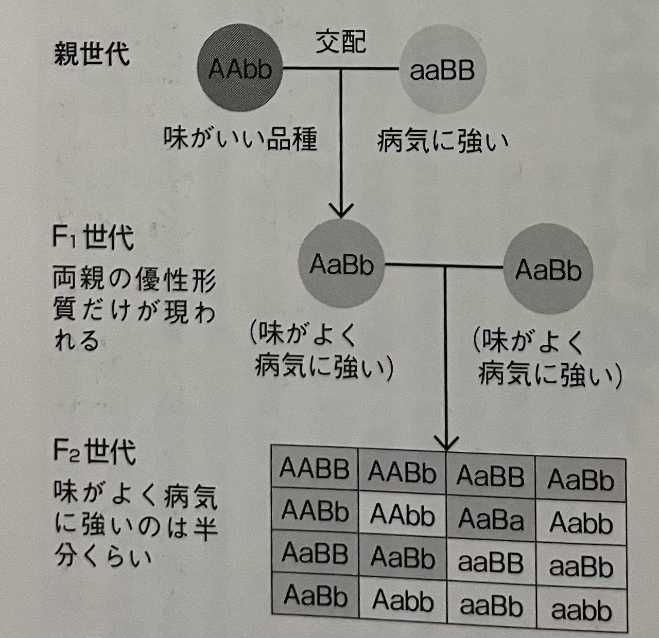 F1이란 잡종 제1세대(first filial generation)이라는 의미. 유전적으로 순계의 계통 2종을 교배시키면 양친 모두의 우수한 형질이 다음 세대에도 갖추어져 나타난다. 나아가, 양친의 평균보다도 우수한 능력이 발현하는 '잡종 강세'라는 현상도 일어난다. 예를 들면, 키가 커지고, 병해 저항성이 늘어나고, 환경 적응성이 증가하고, 수확량이 늘어나는 등.