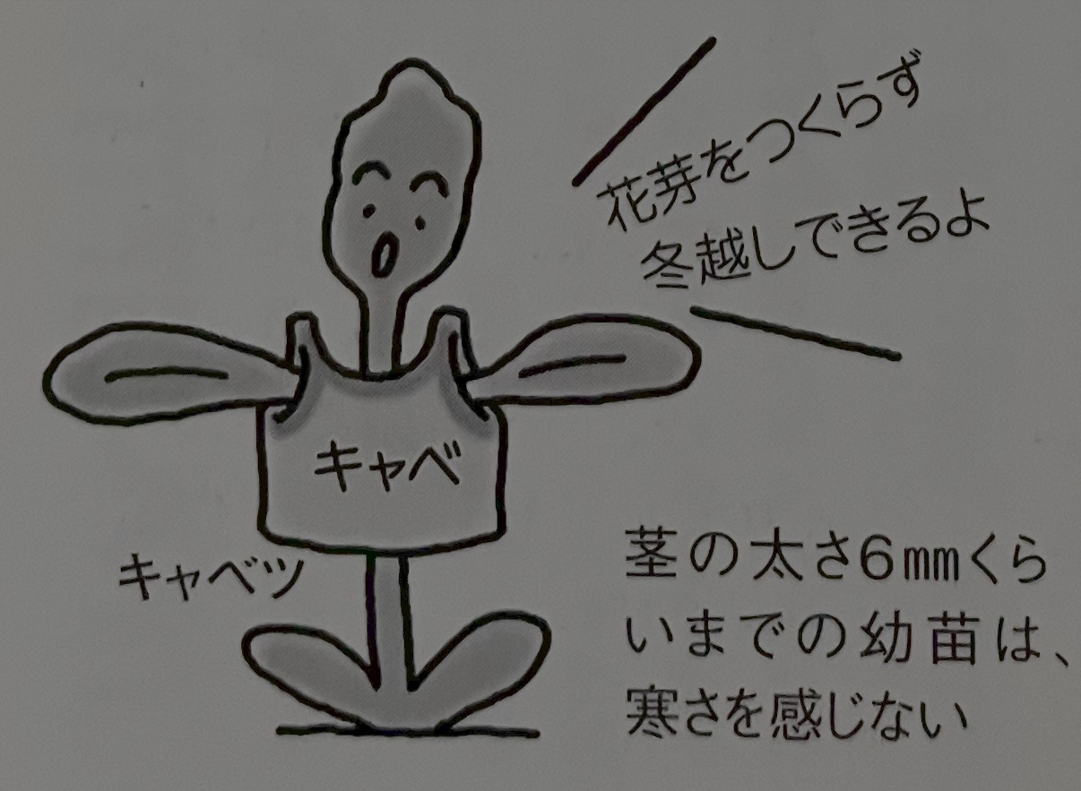 양배추는 줄기의 굵기 6mm 정도까지의 어린 모는 추위를 느끼지 않음.