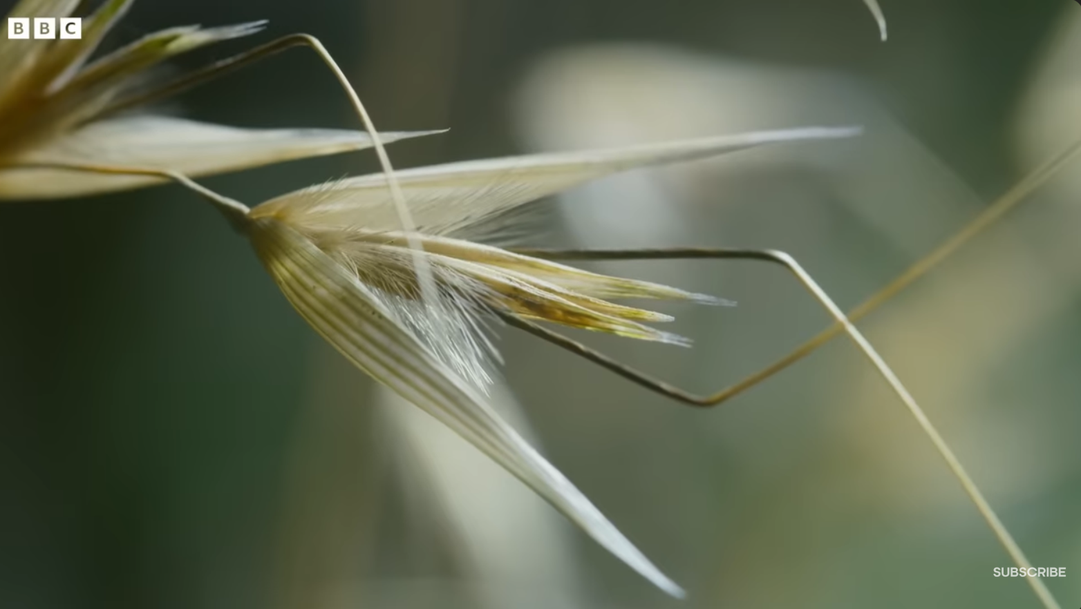 이 야생 귀리는 두 개의 긴 까락이 마치 다리의 역할을 해서 걷는 것처럼 이동한다고 합니다.