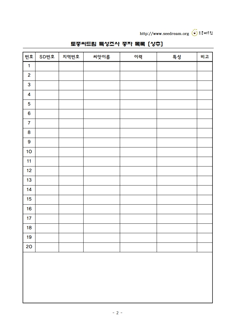 1. 토종씨앗 관찰지: 누구나 손쉽게 기록할 수 있는 참여용 기초 관찰지입니다.