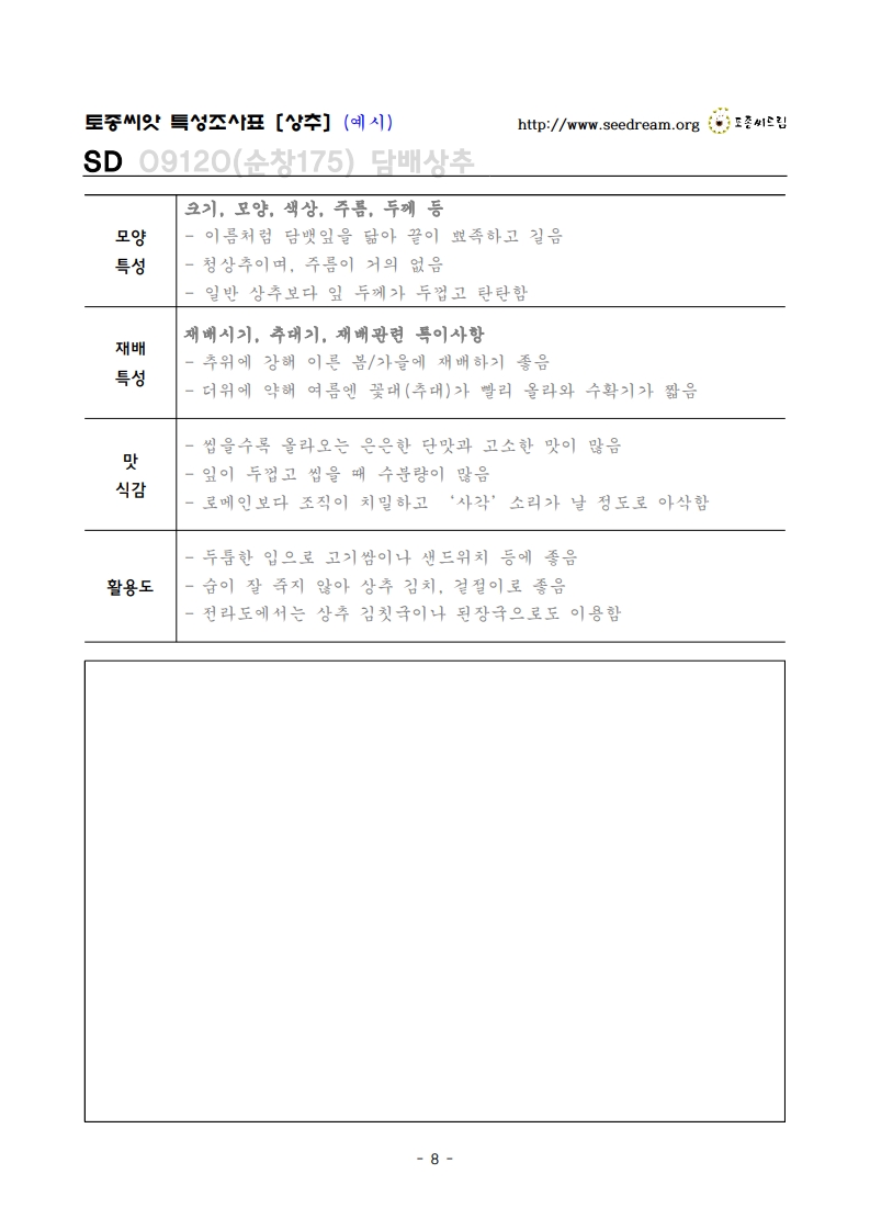 첨부2 토종씨드림 특성조사 기록지(상추편)_연구용_2026