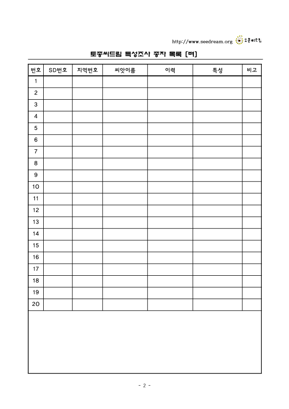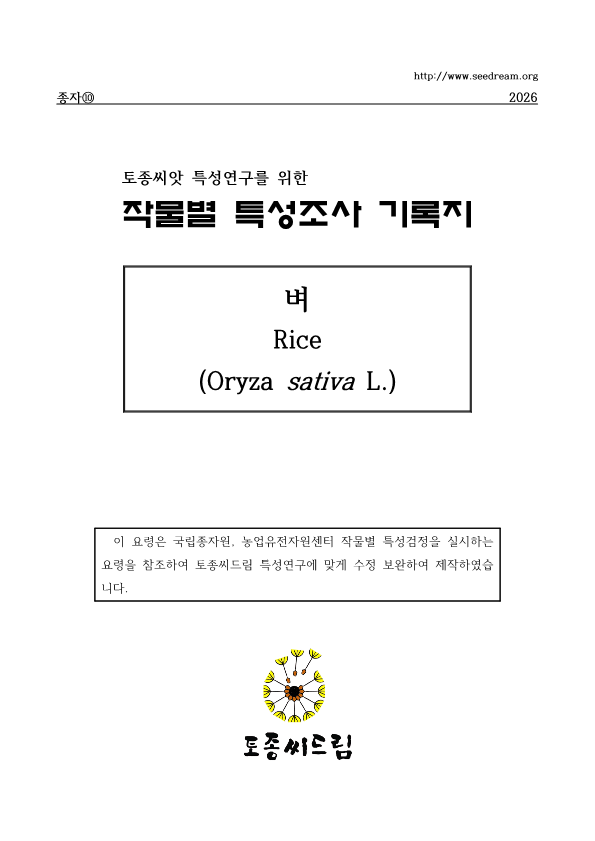첨부2 토종씨드림 특성조사 기록지(벼편)_연구용_2026
