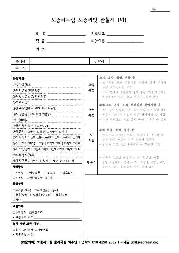 토종씨드림에서 제공하는 토종벼 관찰 기록지 2종 공유합니다.